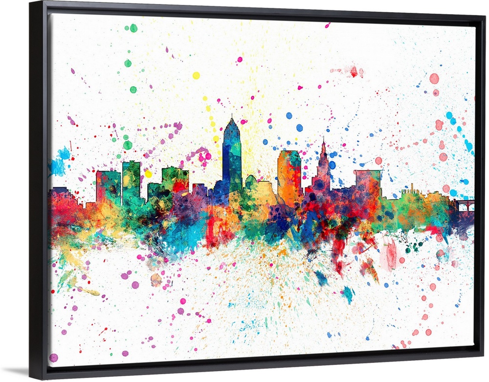 <p>Wild and vibrant paint splatter silhouette of the Cleveland skyline.</p>