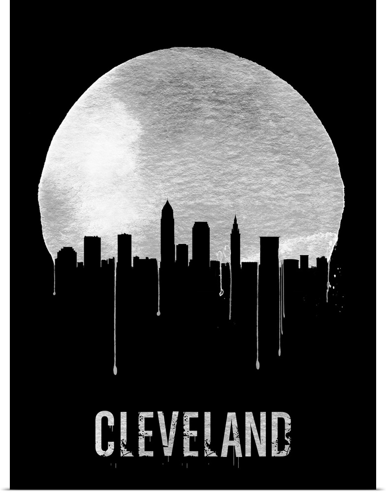 <p>Contemporary watercolor artwork of the Cleveland city skyline, in silhouette.</p>
