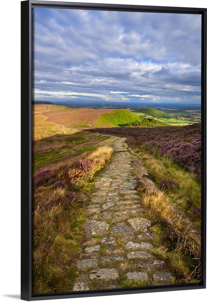 <p>Clouds gather above the Cleveland Way and the heather-clad Little Bonny Cliff, North Yorkshire Moors, Yorkshire, England, United Kingdom, Europe</p>