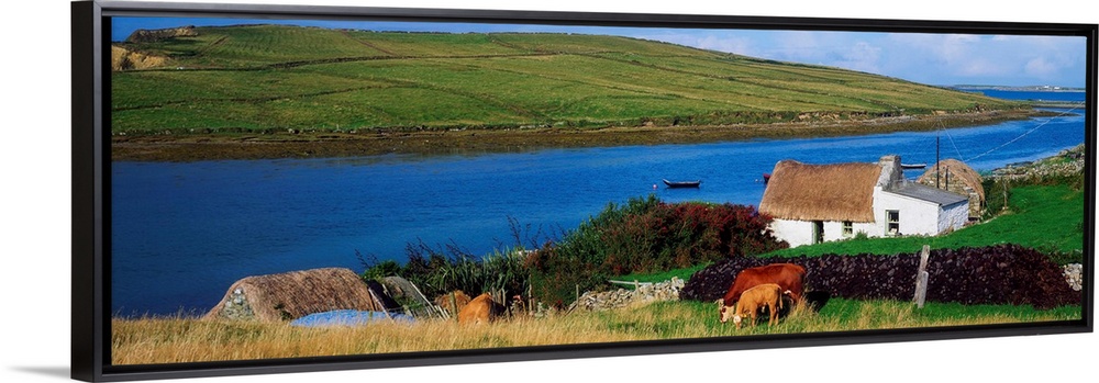 <p>Clifden, Connemara, Co Galway, Ireland; Small Houses On Tidal River.</p>