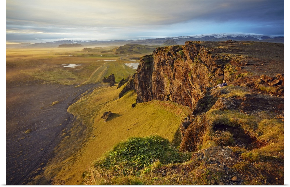<p>Cliff and mountain view from Dyrholaey Island, just before sunset, near Vik, south coast of Iceland, Polar Regions</p>