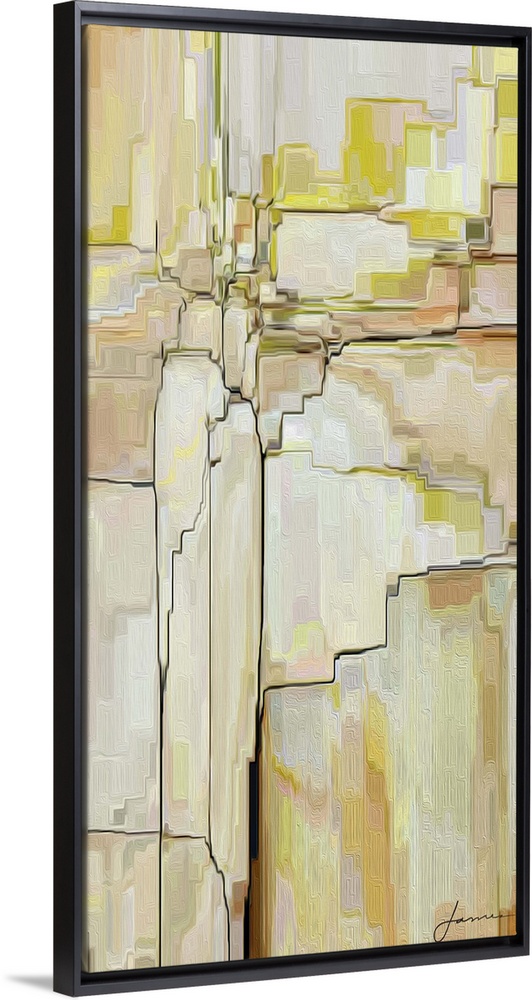 <p>Contemporary abstract artwork using earth tones and jagged lines to create what looks like cliffs.</p>