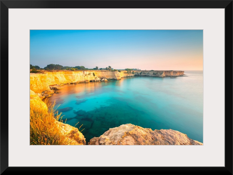 <p>Cliff of Torre Sant'Andrea at dawn, Lecce province, Apulia, Italy.</p>