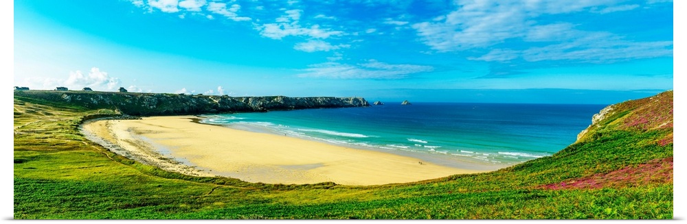 <p>Cliffs in the sea, pointe de pen-hir, camaret-sur-mer, finistere, brittany, france.</p>