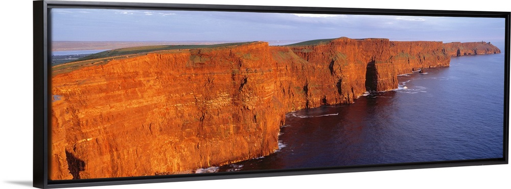 <p>Orange-red cliffside of the Cliffs of Moher County in Clare, Ireland.</p>