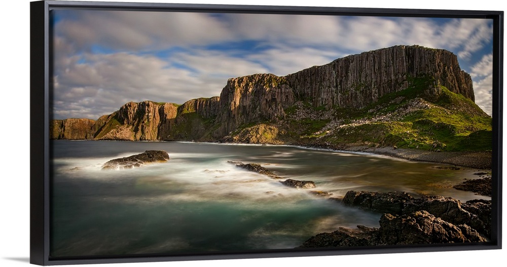 <p>Cliffs of Rubha Hunish cape at sunset, Isle of Skye, Scotland.</p>