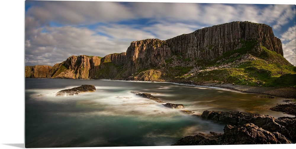 <p>Cliffs of Rubha Hunish cape at sunset, Isle of Skye, Scotland.</p>