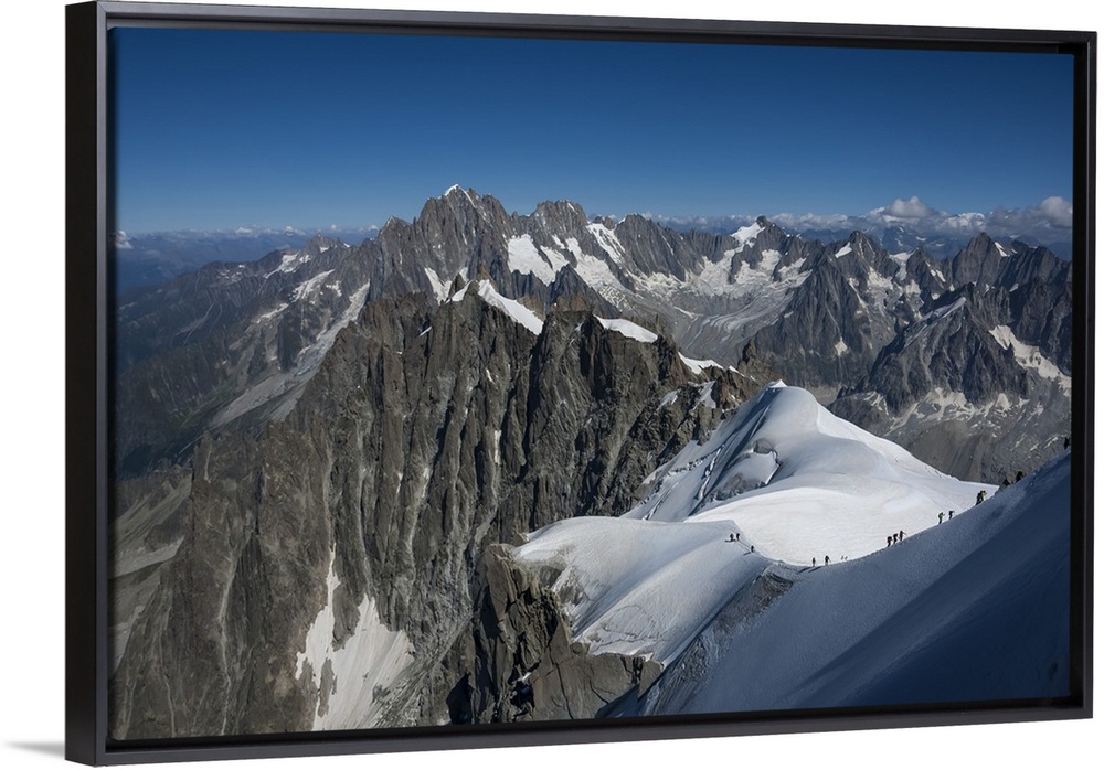 <p>Climbers on a snowfield approaching the Aiguile du Midi, 3842m, Graian Alps, Chamonix, Haute Savoie, French Alps, France, Europe</p>