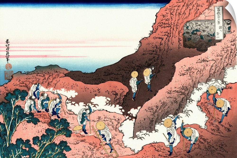 <p>Climbing on Mt. Fuji (Shojin tozan), from the ukiyo-e series 36 Views of Mt. Fuji. Depicts pilgrims at the summit of Mt. Fuji. Color woodblock print. Circa 1830. Private collection.</p>
