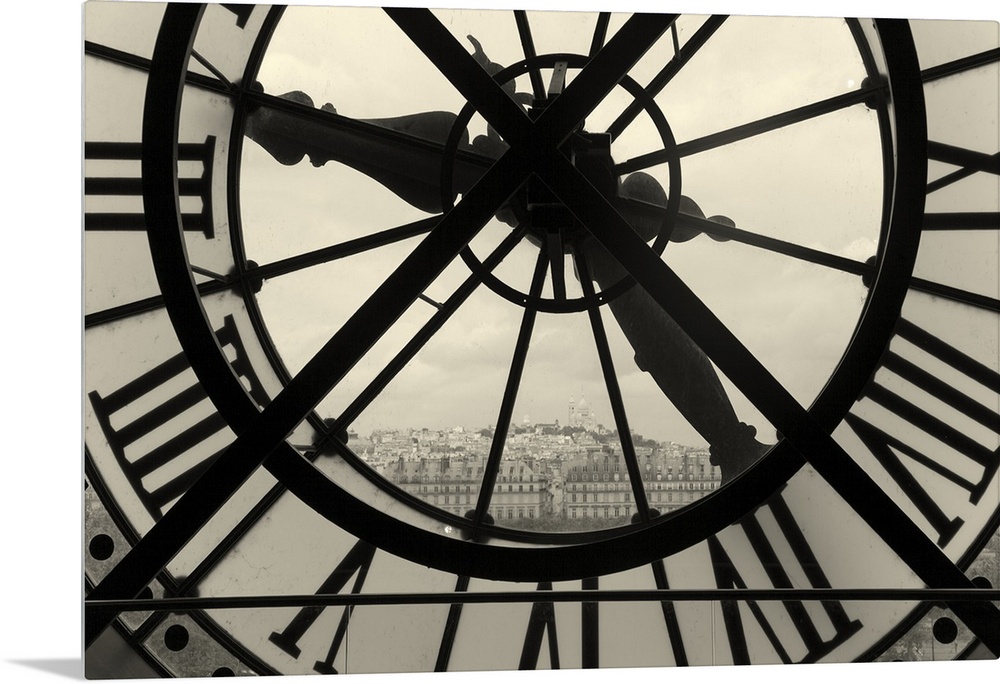 <p>Clock and view of Montmartre, Paris, Ile de France, France.</p>