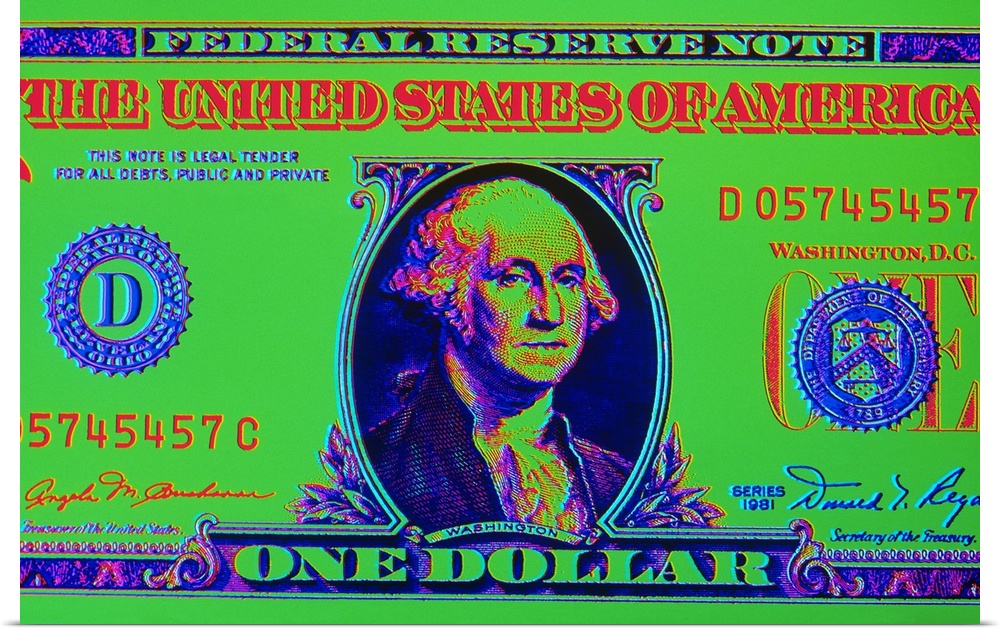 <p>Close-up detail american dollar bill george washington in center colors are surreal posterized.</p>