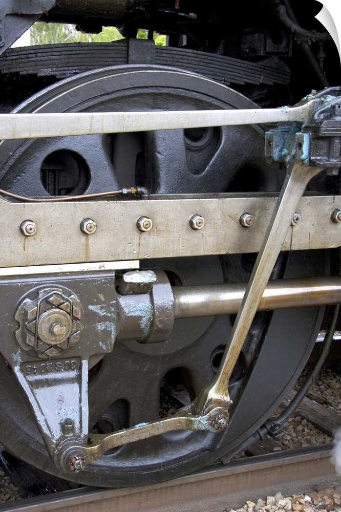 <p>Close up detail view of steam locomotive drive wheel...train, rail, railroad, engine, engineer, locomotive, transportation, historic, vintage, steam engine, boise, idaho, challenger, boise depot, steam</p>