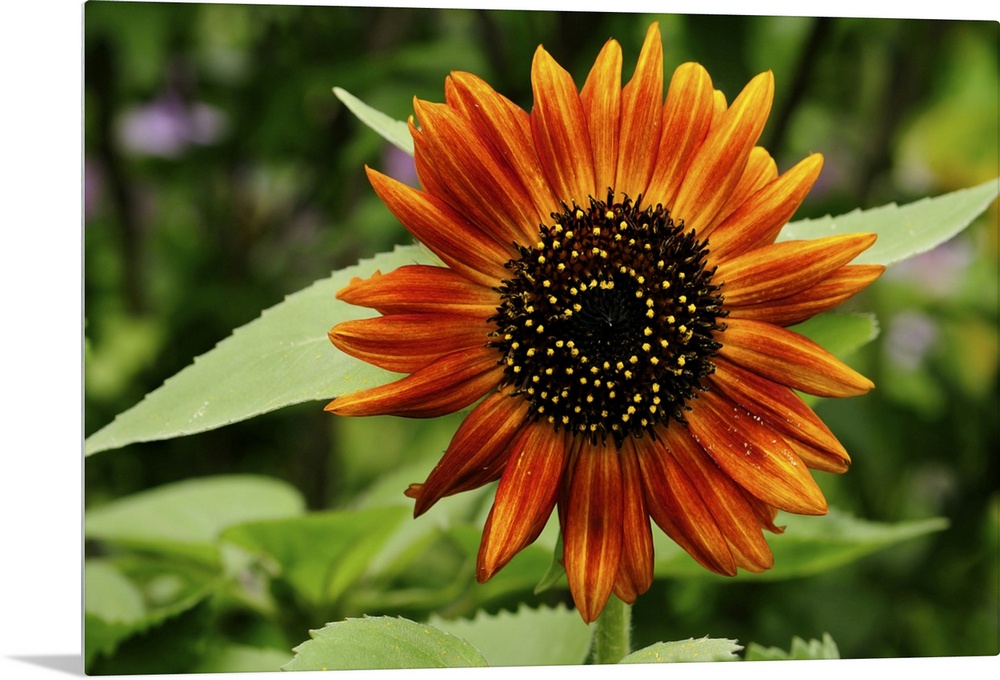 <p>Close up of a deep orange sunflower, Helianthus annuus. Lexington, Massachusetts.</p>