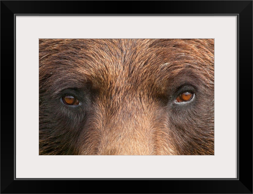 <p>The eyes and bridge of a brown bears nose are photographed very closely for this large piece.</p>