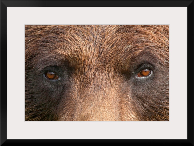 <p>The eyes and bridge of a brown bears nose are photographed very closely for this large piece.</p>