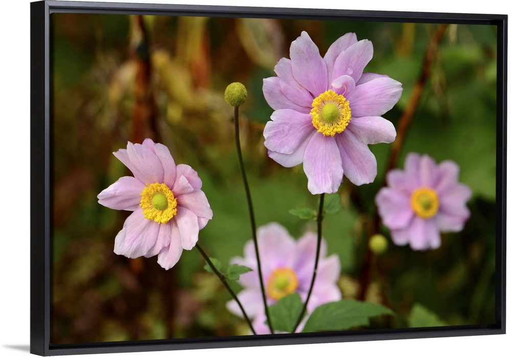 <p>Close up of a flowering pink anemone plant. Northeast Harbor, Asticou Azalea Gardens, Maine.</p>