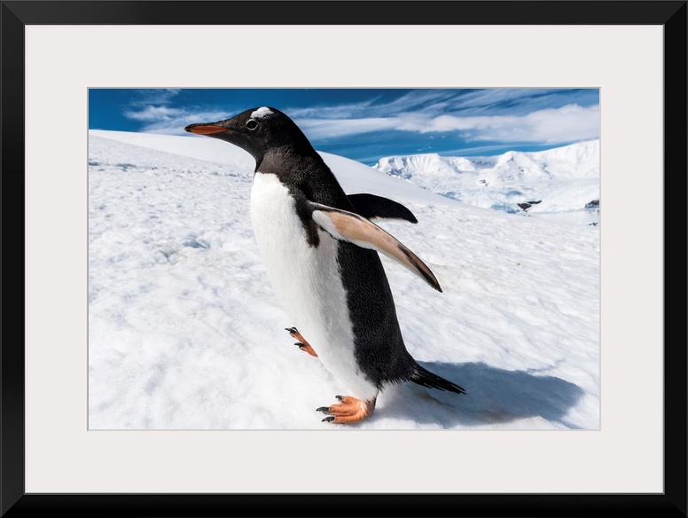 <p>Close up of a Gentoo penguin (Pygoscelis papua), Neko Harbor, Antarctica .</p>