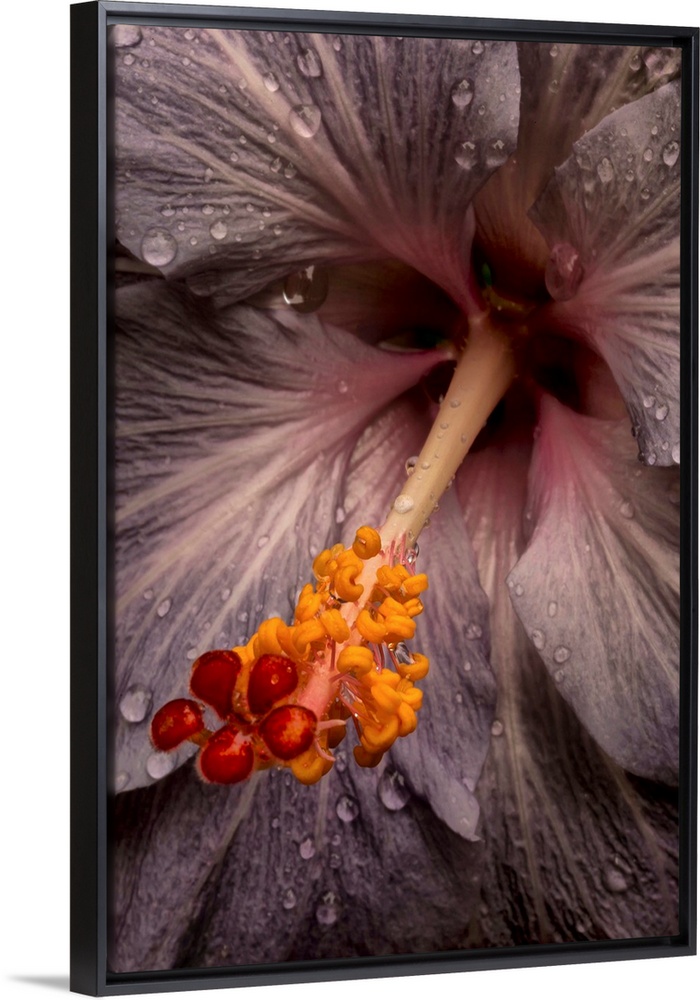 <p>Close up of a Hibiscus flower with water droplets; Hawaii, United States of America</p>