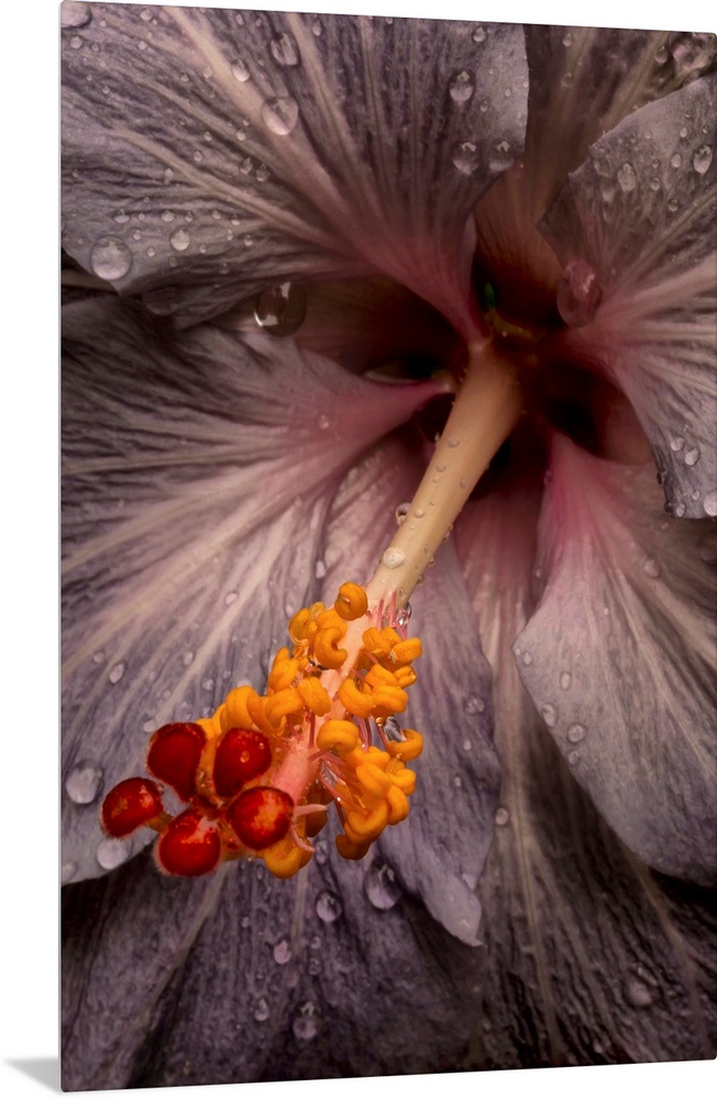 <p>Close up of a Hibiscus flower with water droplets; Hawaii, United States of America</p>