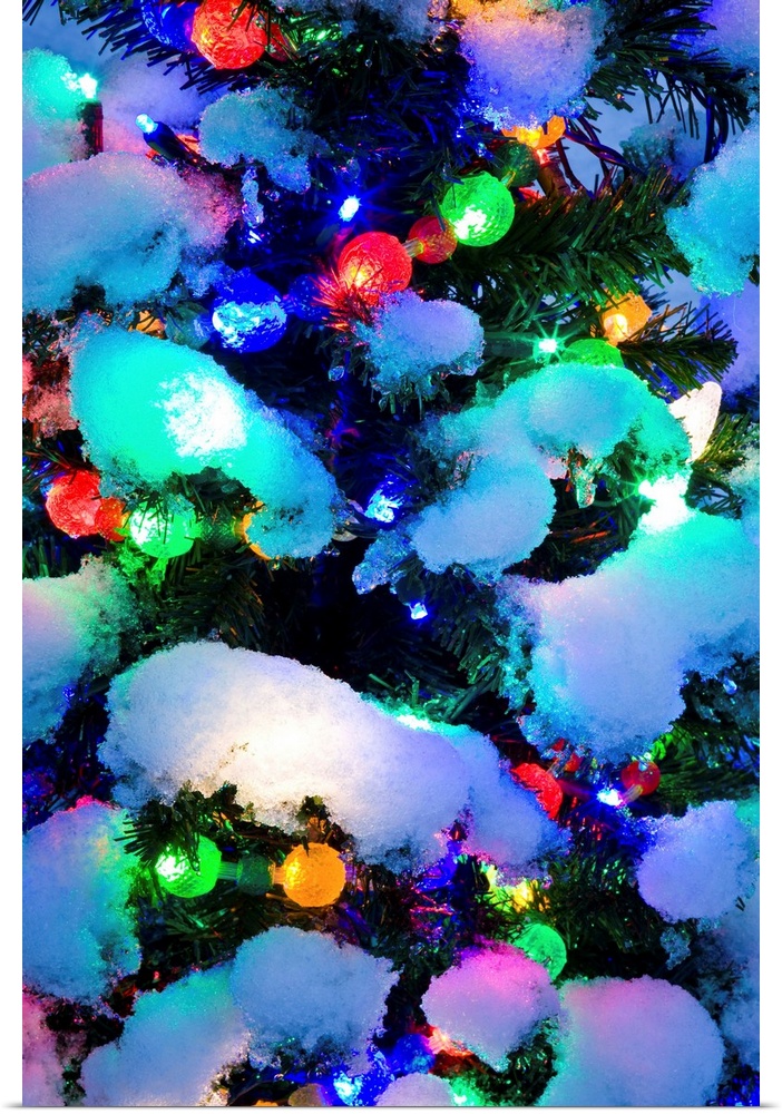 <p>Christmas tree light detail, twilight, winter.</p>
