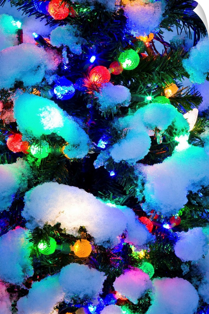 <p>Christmas tree light detail, twilight, winter.</p>