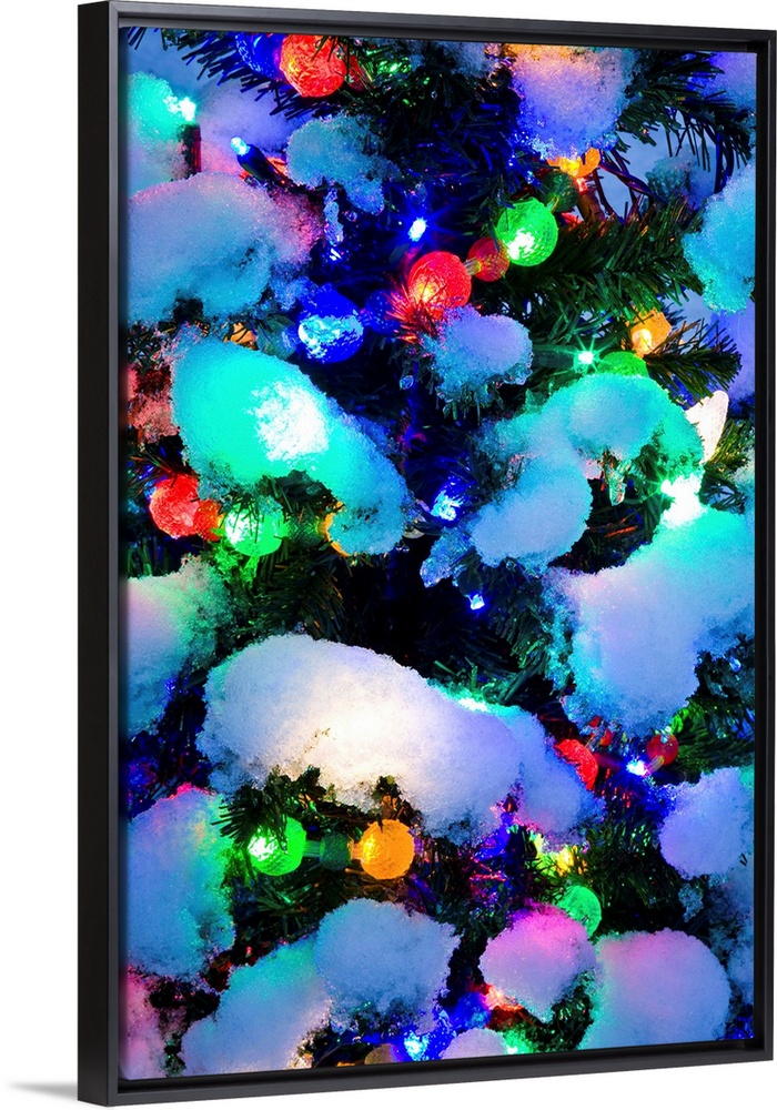 <p>Christmas tree light detail, twilight, winter.</p>