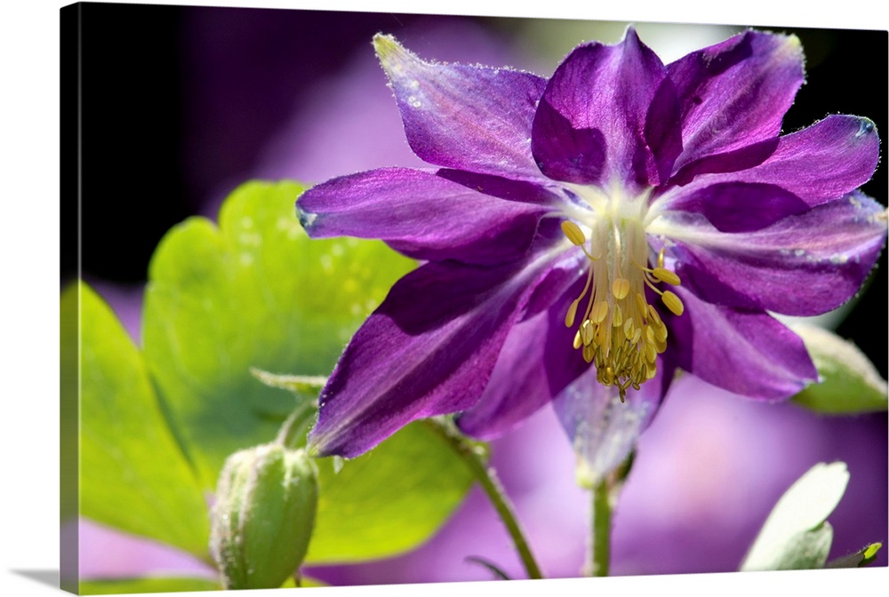 <p>Close up of a purple columbine flower, Aquilegia species.</p>