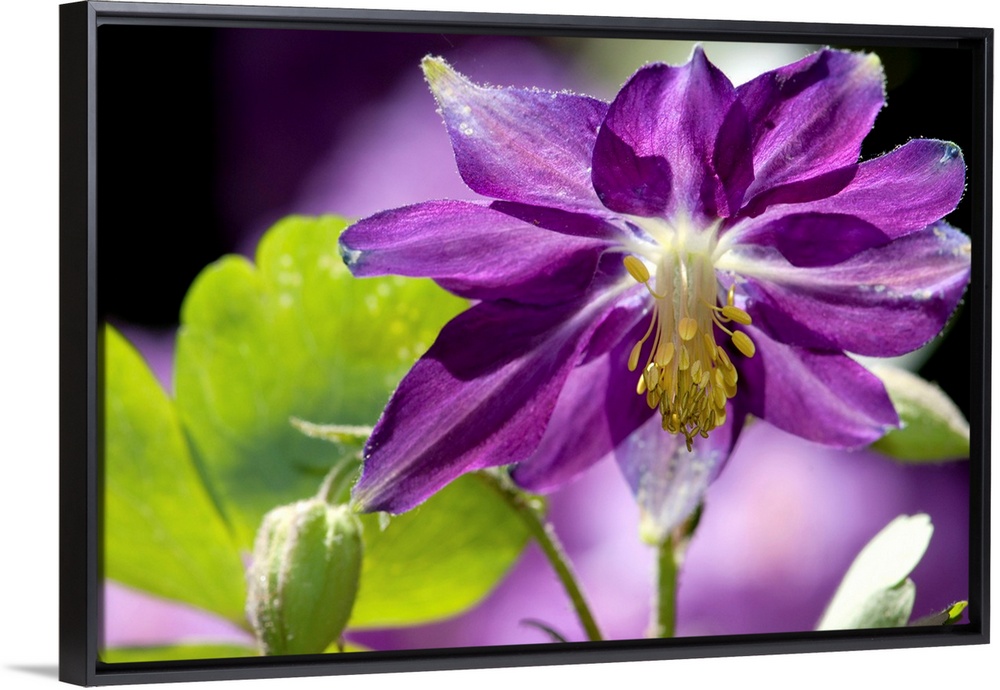 <p>Close up of a purple columbine flower, Aquilegia species.</p>