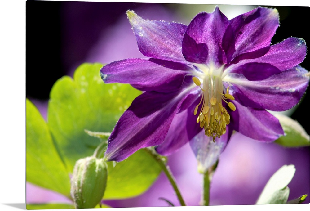 <p>Close up of a purple columbine flower, Aquilegia species.</p>
