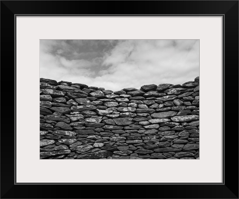 <p>Close-up of a stone wall and clouds in the sky, Ballyferriter, county Kerry, Ireland.</p>