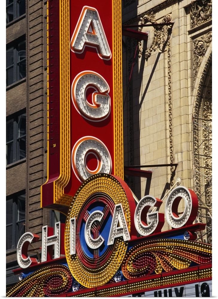 <p>Vertical photograph of the Chicago Theatre sign in the daytime.</p>