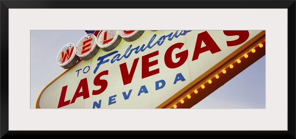 <p>Panoramic photo of a close up of the classic Las Vegas sign.</p>