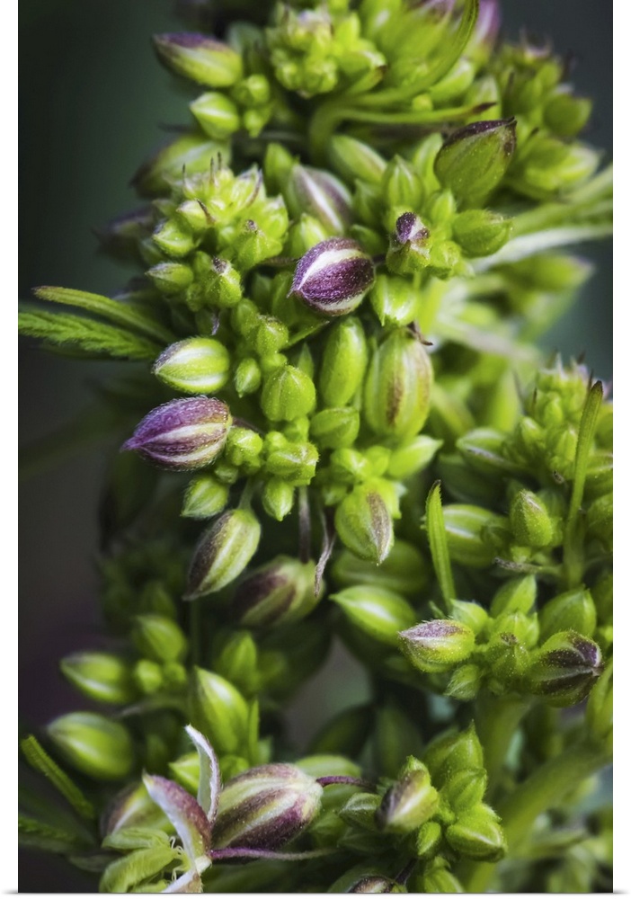 <p>Close-up of a young male cannabis plant, flower, and seeds. Marina, California, united states of America.</p>
