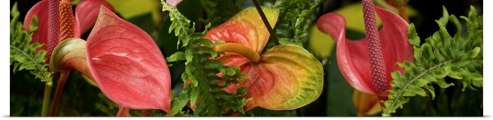 <p>Close-up of Anthurium plant and fern leaves</p>