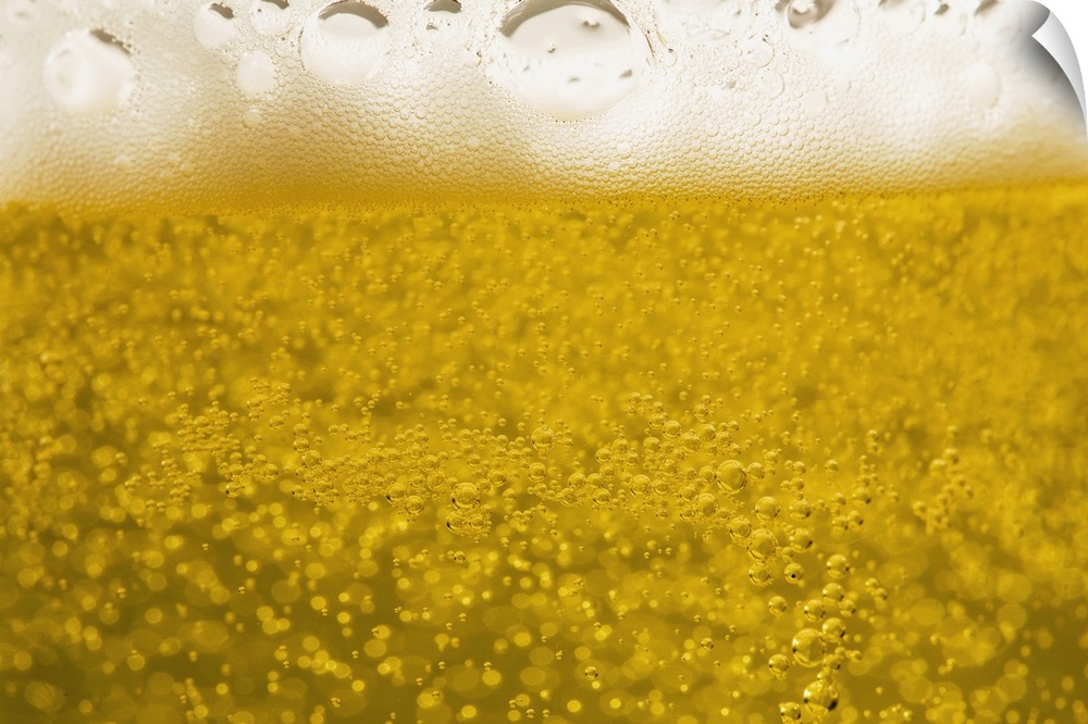 <p>close-up of beer bubbles and foam in a glass</p>
