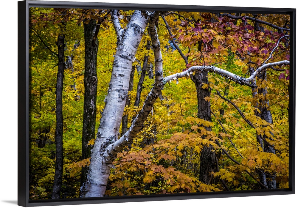 <p>Close-Up of Birch Tree Amongst Autumn Forest Foliage</p>