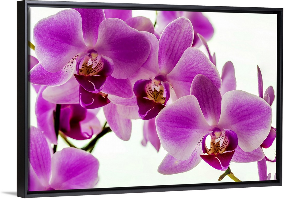 <p>Close-up of colourful orchid with pink petals; Studio.</p>