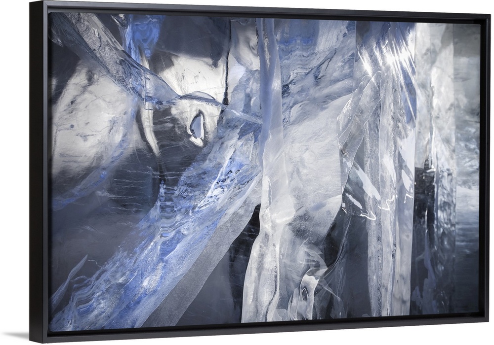 <p>Close-up of cracks in a block of ice, Winnipeg, Manitoba, Canada.</p>