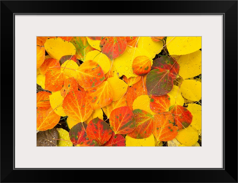 <p>Close-up of fallen leaves, Maroon Bells, Maroon Creek Valley, Aspen, Pitkin County, Colorado, USA</p>