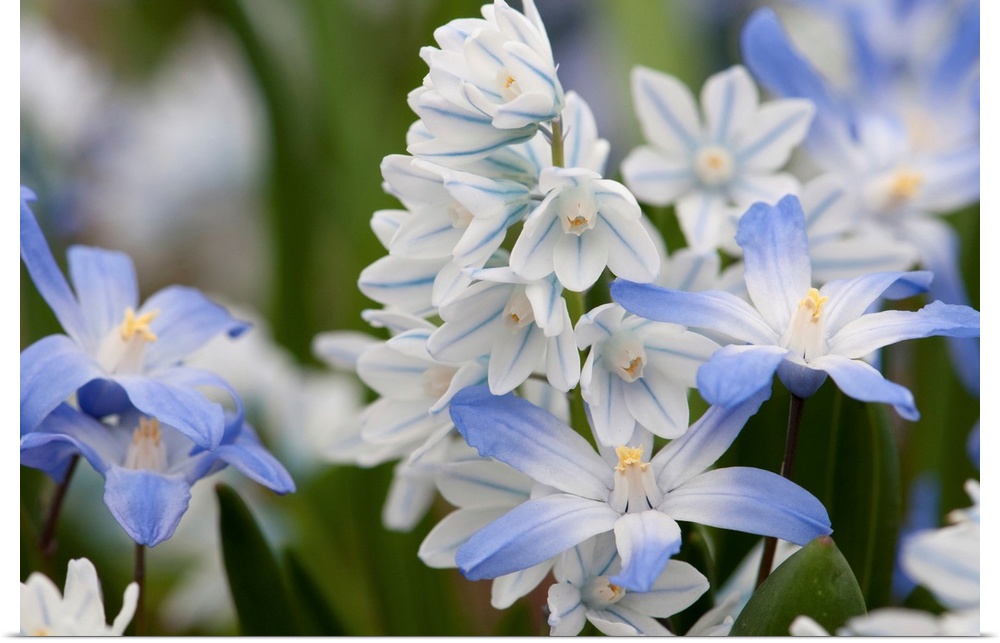 <p>Close up of glory-of-the-snow flowers, Chionodoxa species. Jamaica Plain, Massachusetts.</p>