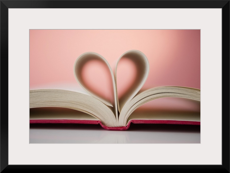 <p>A picture taken of a book with its pages folded inward to form a heart shape.</p>