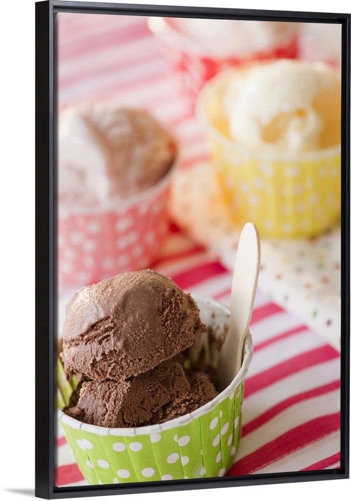 <p>Close up of ice cream in colorful cups</p>