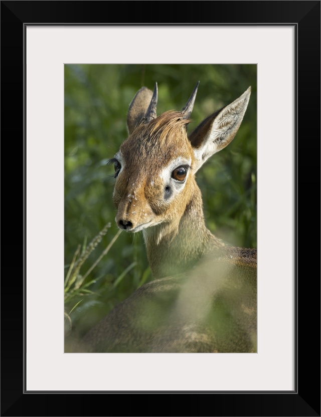 <p>Close-up of kirk's dik-dik (madoqua kirkii) looking back over shoulder, Tarangire national park, Tanzania.</p>
