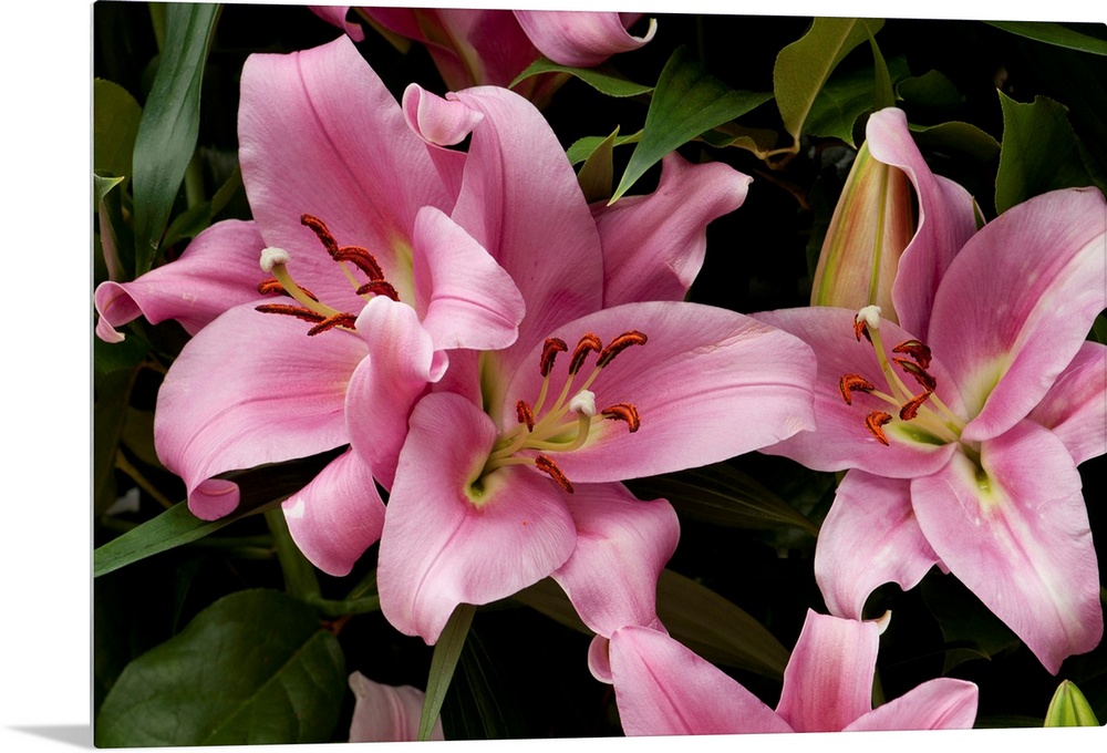 <p>Close up of large pink lilies. Longwood Gardens, Pennsylvania.</p>