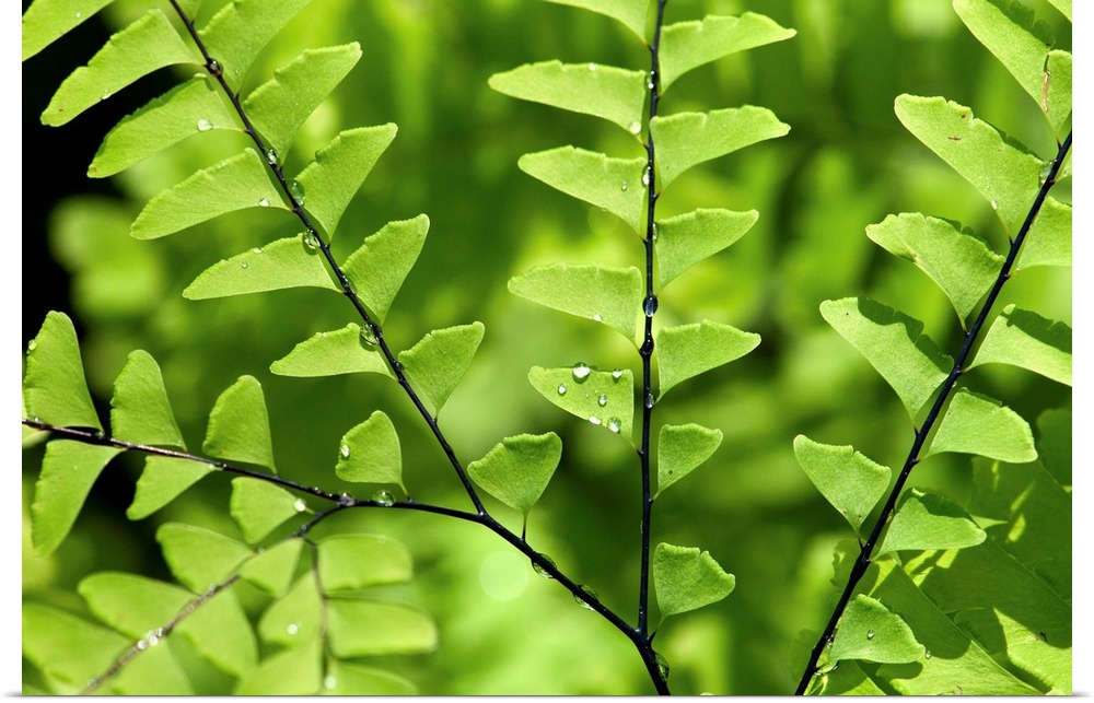 <p>Close up of maidenhair fern fronds, Adiantum species, with dew drops.</p>