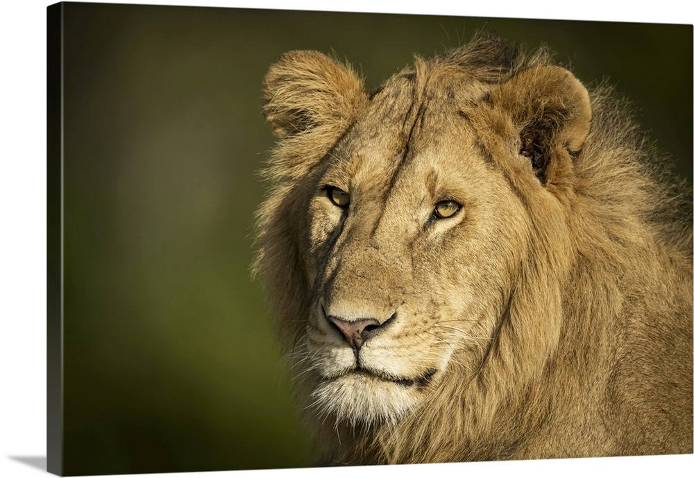 <p>Close-up of male lion (panthera leo) head and shoulders, Serengeti, Tanzania.</p>