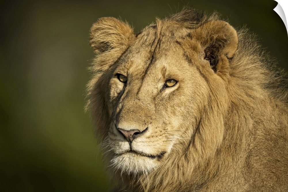 <p>Close-up of male lion (panthera leo) head and shoulders, Serengeti, Tanzania.</p>