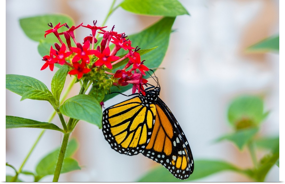 <p>Close-up of Monarch butterfly (Danaus plexippus) pollinating flowers, Florida, USA</p>