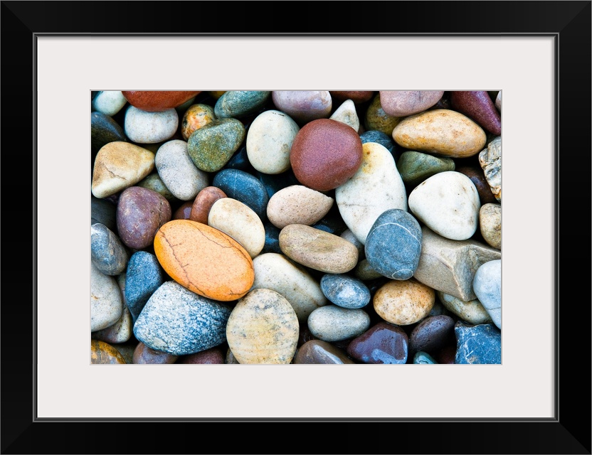 <p>A horizontal photograph of smooth river stones piled on a beach. This calming photograph would make a wonderful decorative accent in a room with a natural color palette.</p>