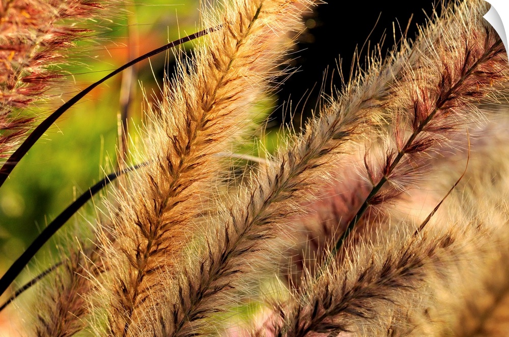 <p>Close up of ornamental grasses backlit by the late afternoon sun.</p>